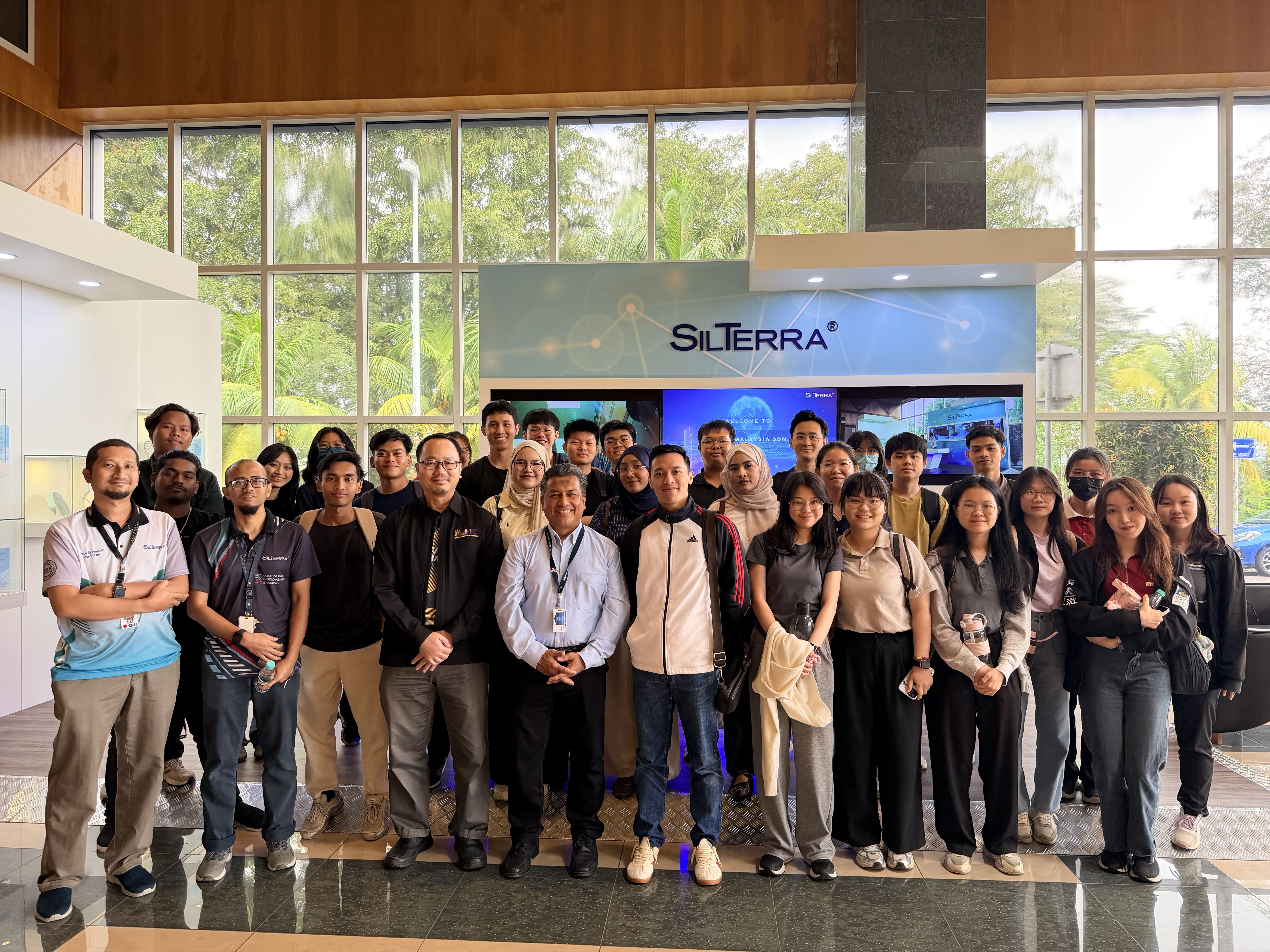 On 18th November 2025, students from EPP 351 – Advanced Manufacturing Process, led by Assoc. Prof. Dr. Jamaluddin Abdullah, participated in an educational visit to SilTerra at Kulim Hi-Tech Park. This visit, part of the course curriculum, aims to enhance students’ learning experience beyond the classroom and inspire them about the world of semiconductor manufacturing and technology.